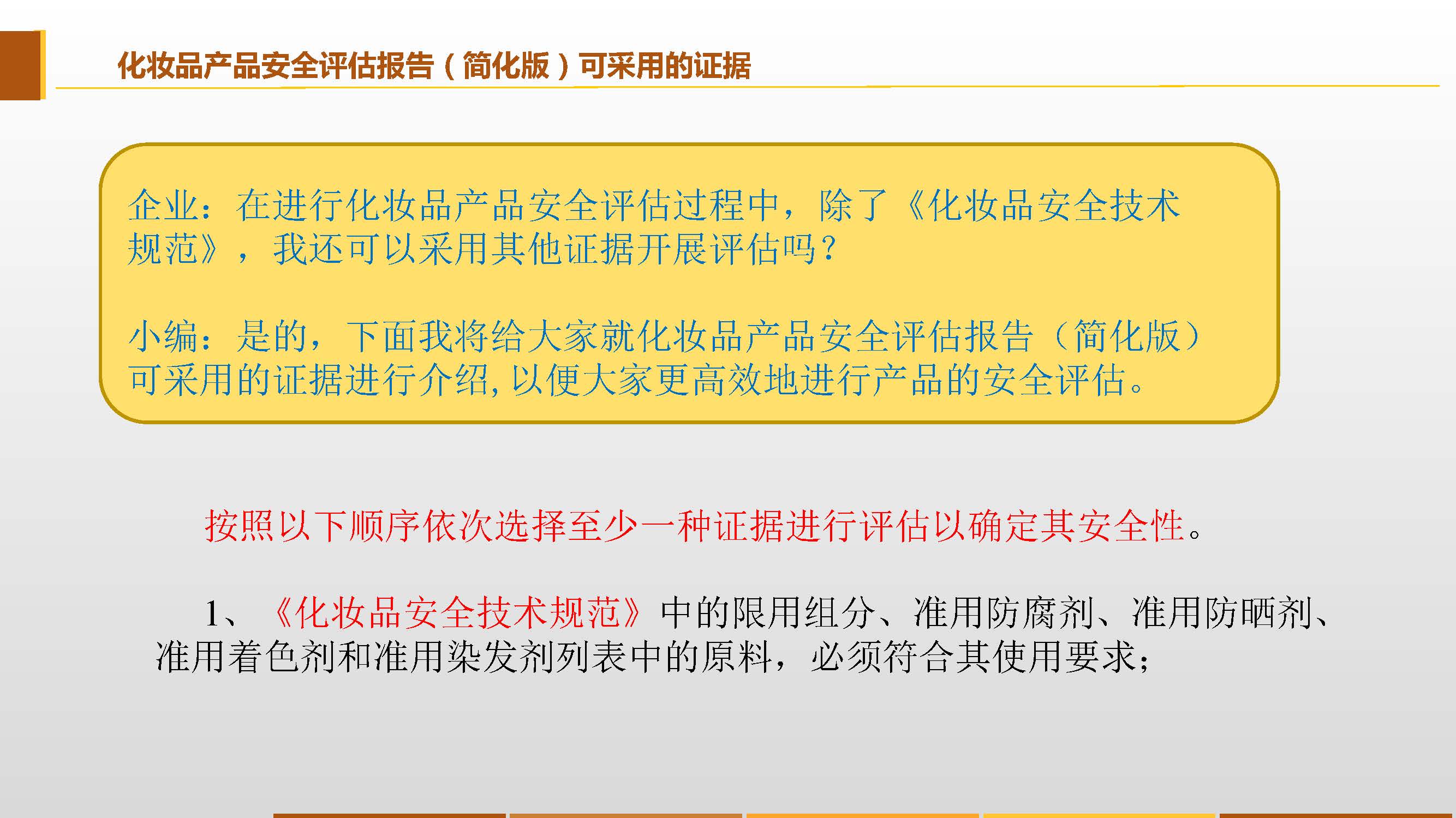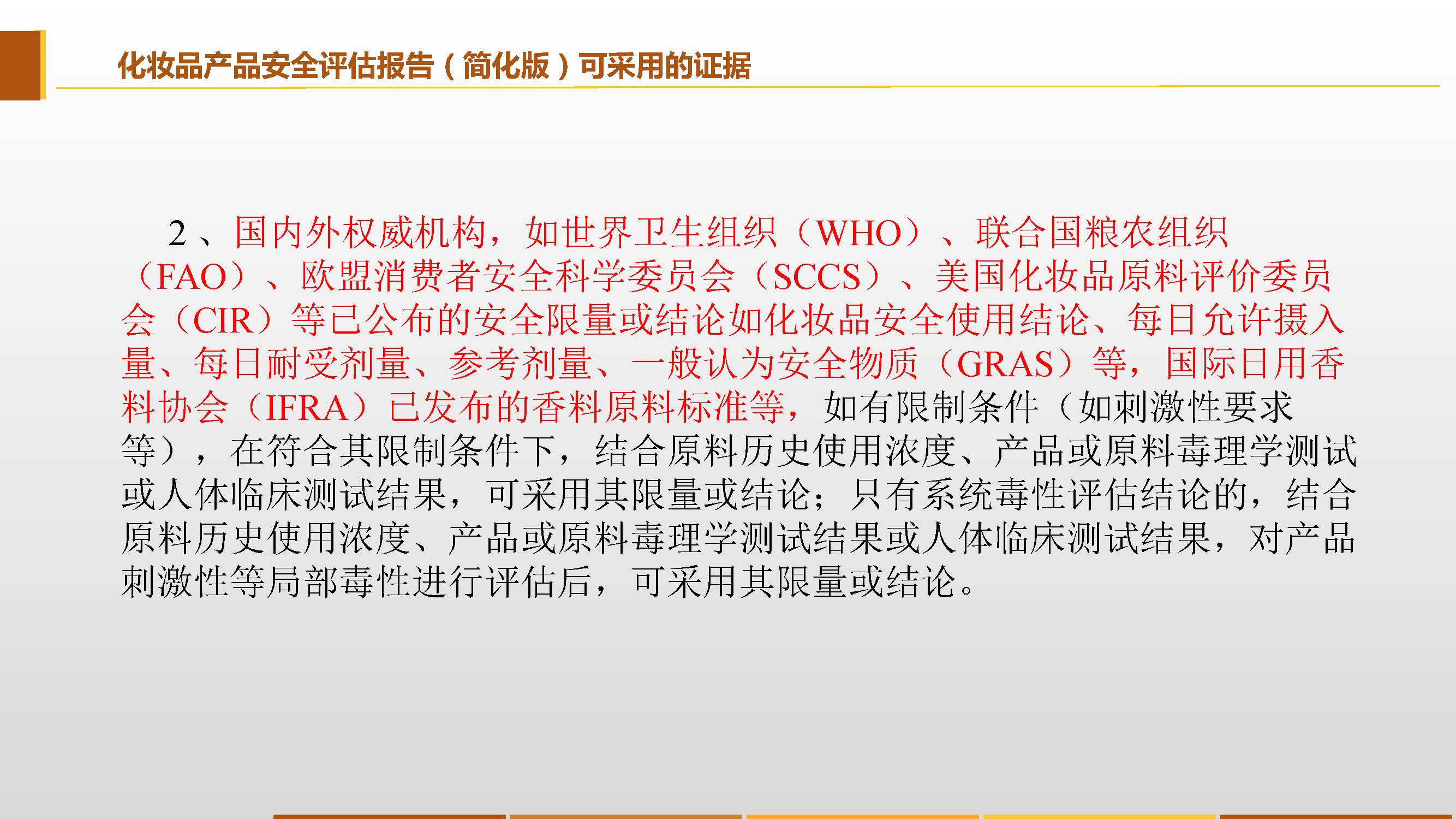 【审评科学】《化妆品安全评估技术导则》简介----(三)化妆品产品安全评估报告(简化版)可采用的证据