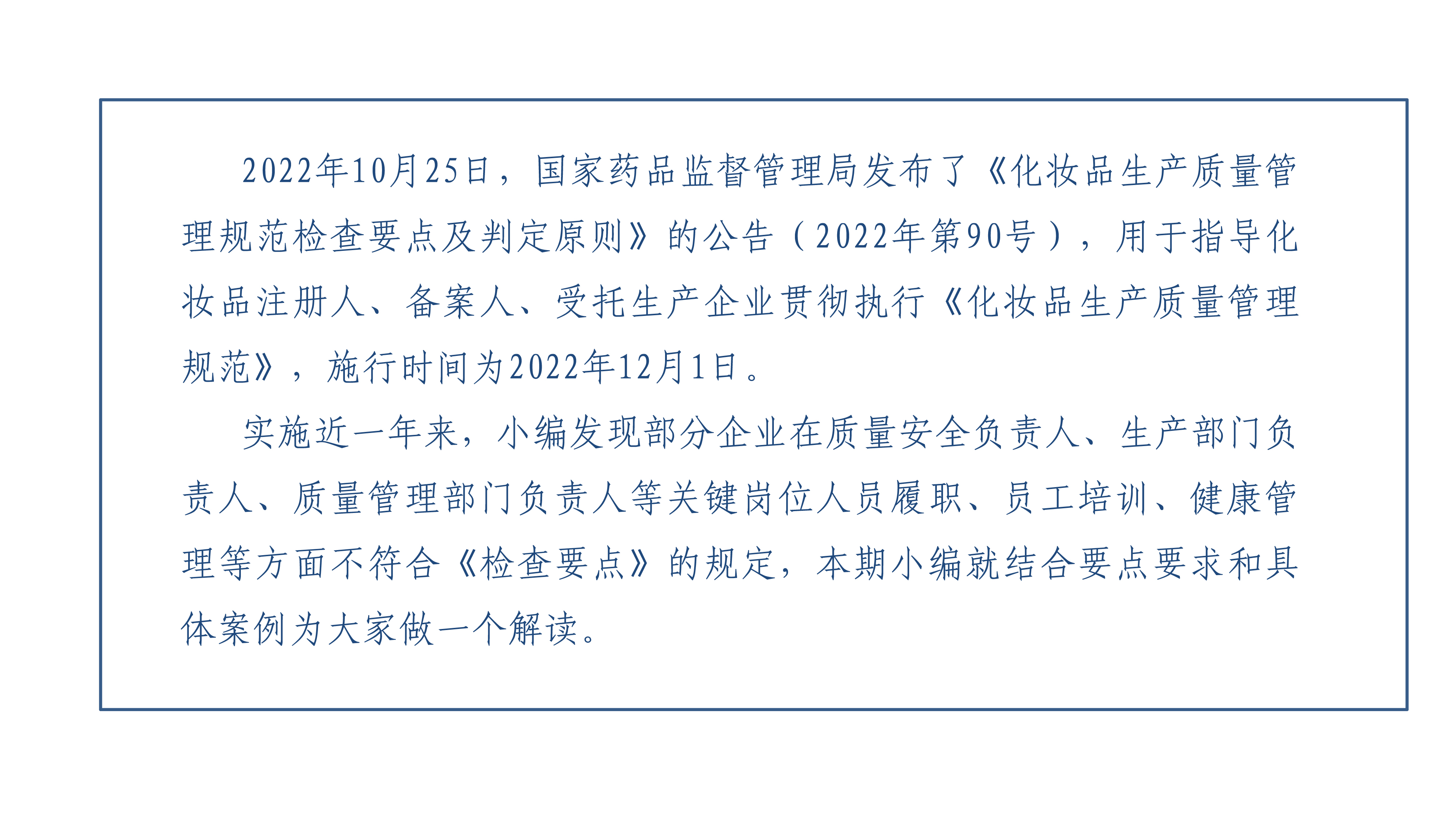 【审评科学】《化妆品生产质量管理规范检查要点及判定原则》解读(一)