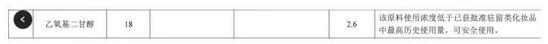 1)产品为驻留类,该原料具有驻留类和淋洗类产品最高历史使用量信息,但该原料的使用量超过驻留类产品最高使用量。如:乙氧基二甘醇(配方中使用浓度为18%,驻留类最高历史使用浓度为2.6%,评估结论为该原料使用浓度低于已批准驻留类化妆品中最高历史使用量。