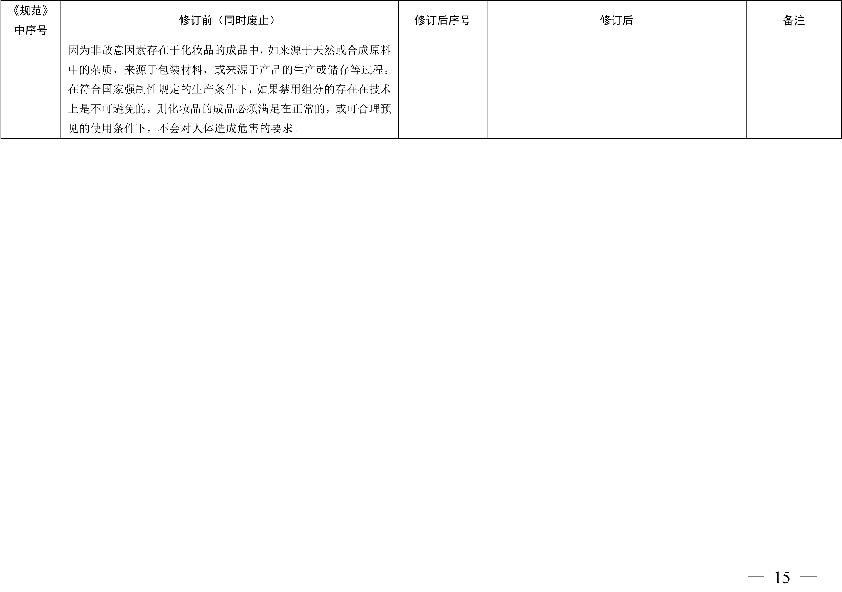 为进一步加强化妆品原料管理,保证化妆品质量安全,依据《化妆品监督管理条例》相关规定,国家药品监督管理局组织对《化妆品安全技术规范(2015年版)》(以下简称《规范》)第二章中的《化妆品禁用组分》进行了修订,形成了《化妆品禁用原料目录》,经化妆品标准专家委员会全体会议审议通过,分别替代原有禁用组分表,纳入《规范》相应章节,并已于2021年5月26日起施行。
