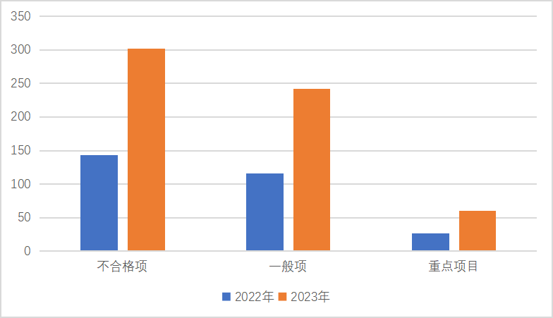 图1:2022年与2023年核查不合格数对比