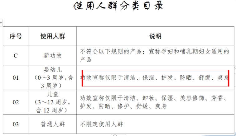 小编提示 在备案资料填报过程中,需用好《化妆品分类规则和分类目录》中的附表,判断产品是不是属于新功效、特殊化妆品等范畴。特别注意婴幼儿和儿童产品的功效宣称分类编码是不是在规定的分类编码中。
