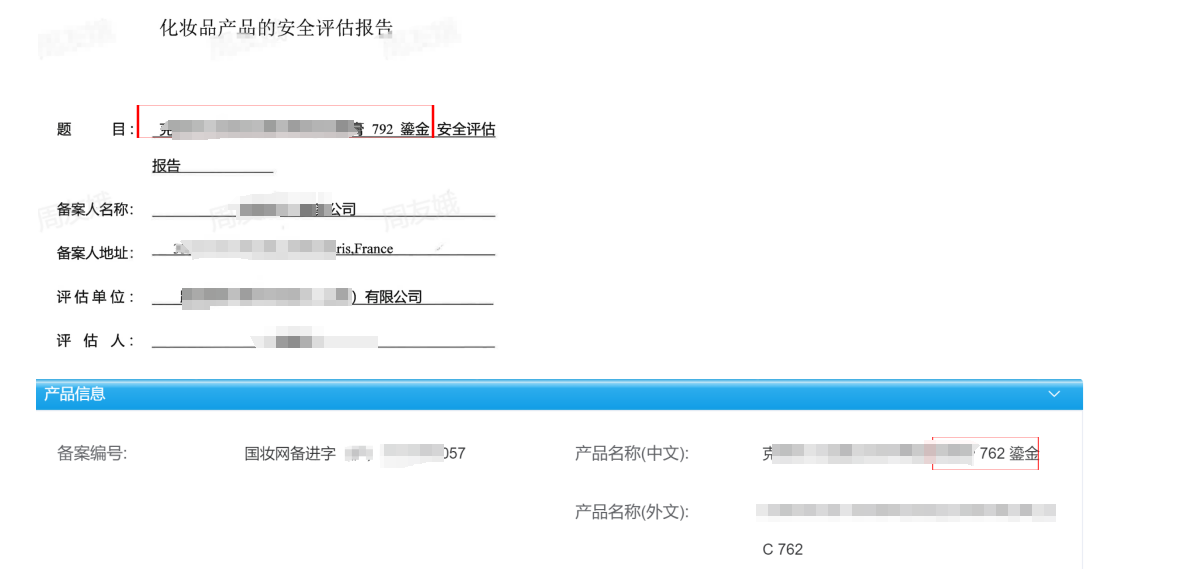 错题7 提供的安全评估报告有误,备案产品名称为“XX 762 红色”,安全评估报告中却提供的是“XX 792 红色”的资料。